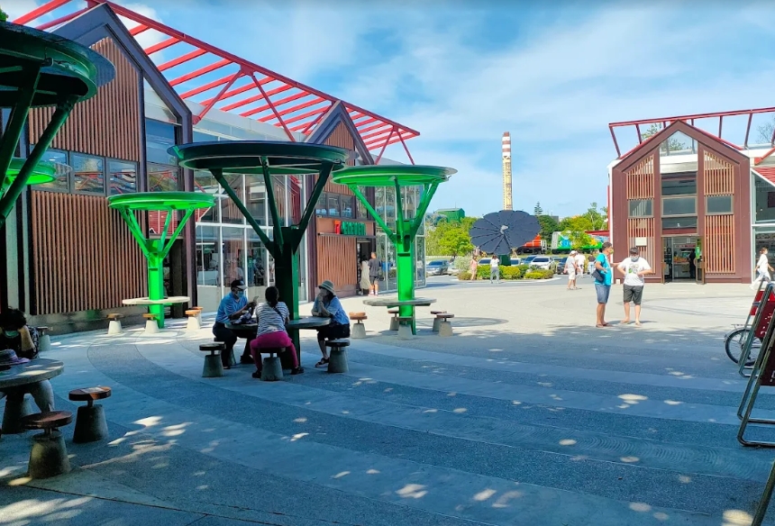 休憩與活動: 設有結合雨水循環系統的水舞廣場、電動車充電站(採用綠能供電),並定期舉辦水泥手作工作坊等體驗活動。