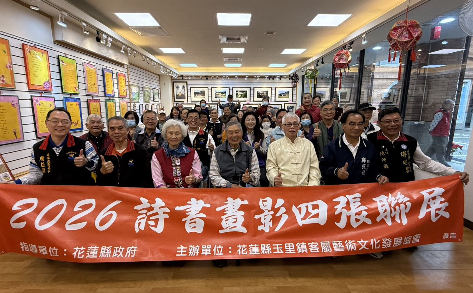 花蓮縣政府昨(5)日於花蓮縣客家文化會館舉辦「2026詩書畫影 四張聯展」開幕茶會,此次展覽是由花蓮縣玉里鎮客屬藝術文化發展協會主辦,期盼透過本次展出,將客家傳統美學轉化為當代生活的養分,