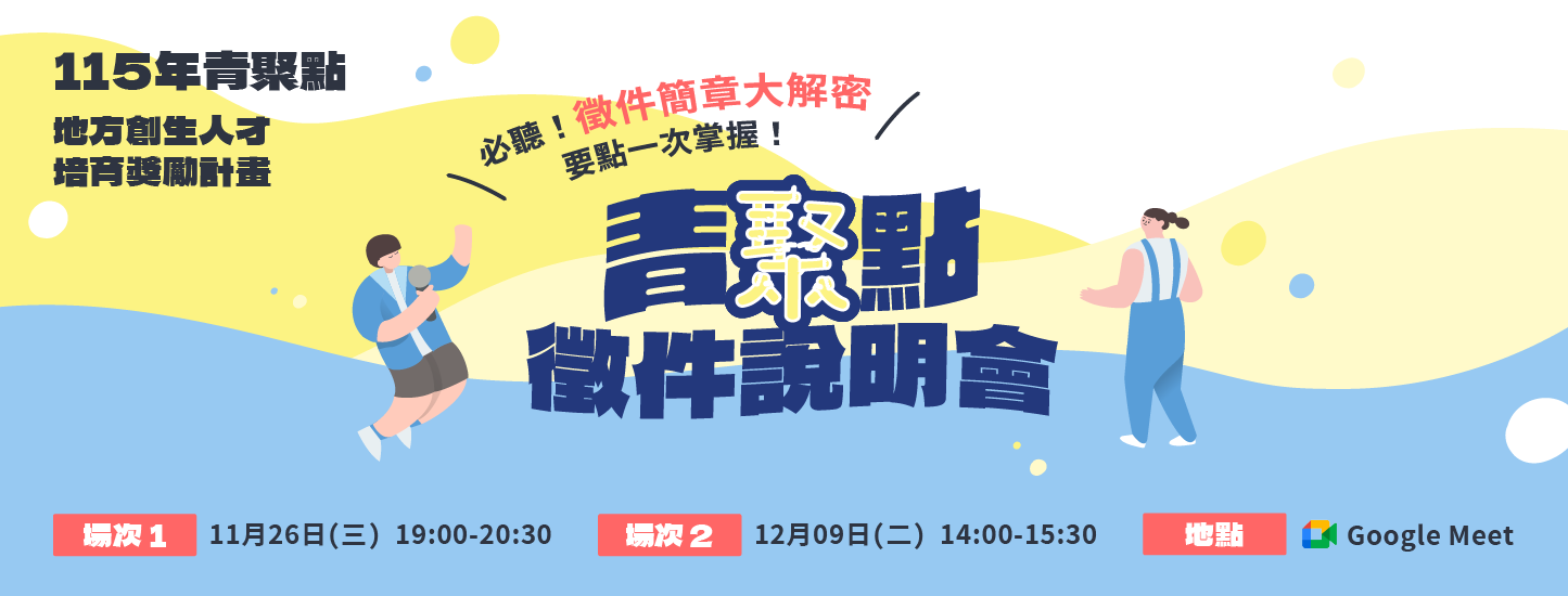 線上【徵件說明會】教育部青年署115青聚點(一般型)